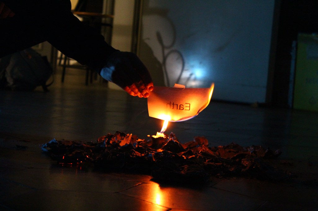 Through a simple yet powerful gesture, poised between ritual and activism, the performance questions our inertia and reveals what will remain if we persist on this path: a vast, silent heap of ash.