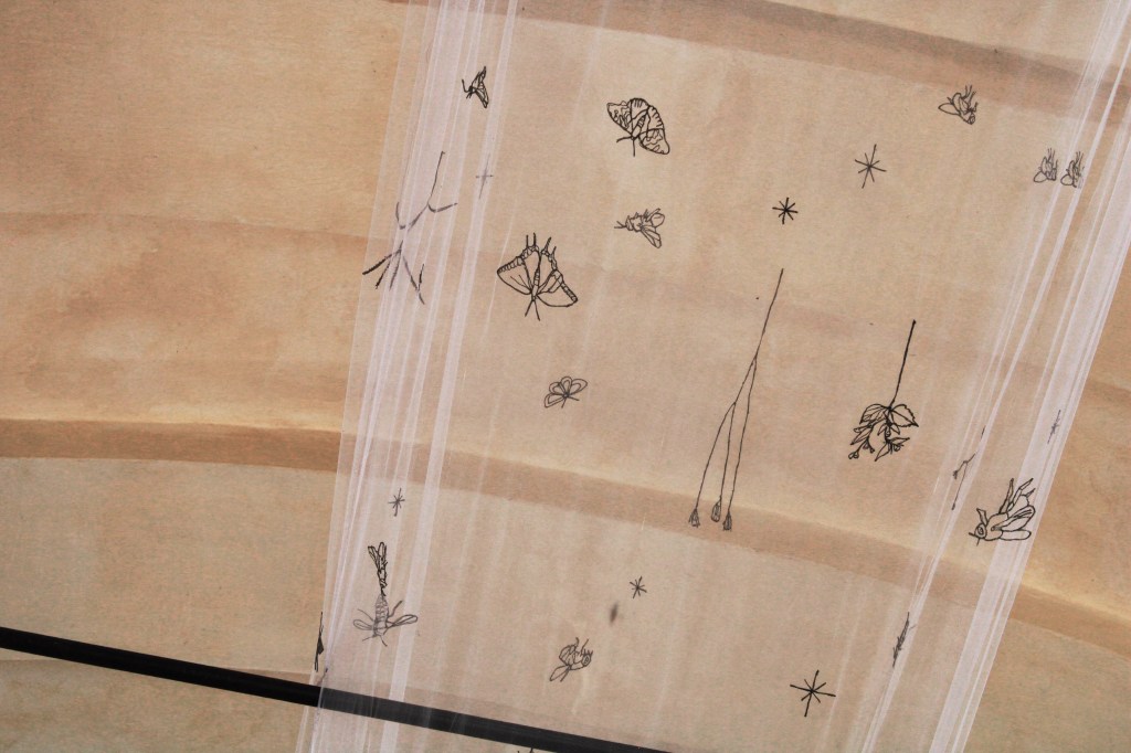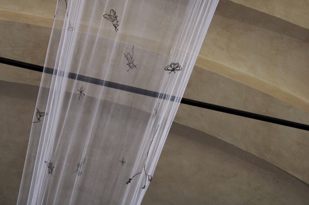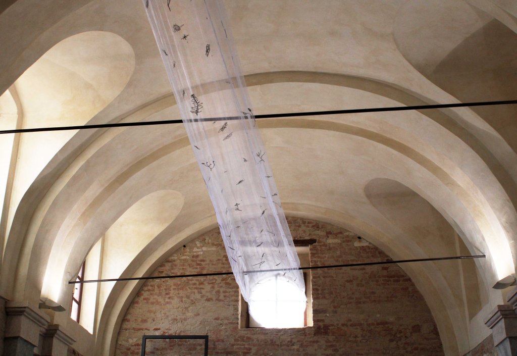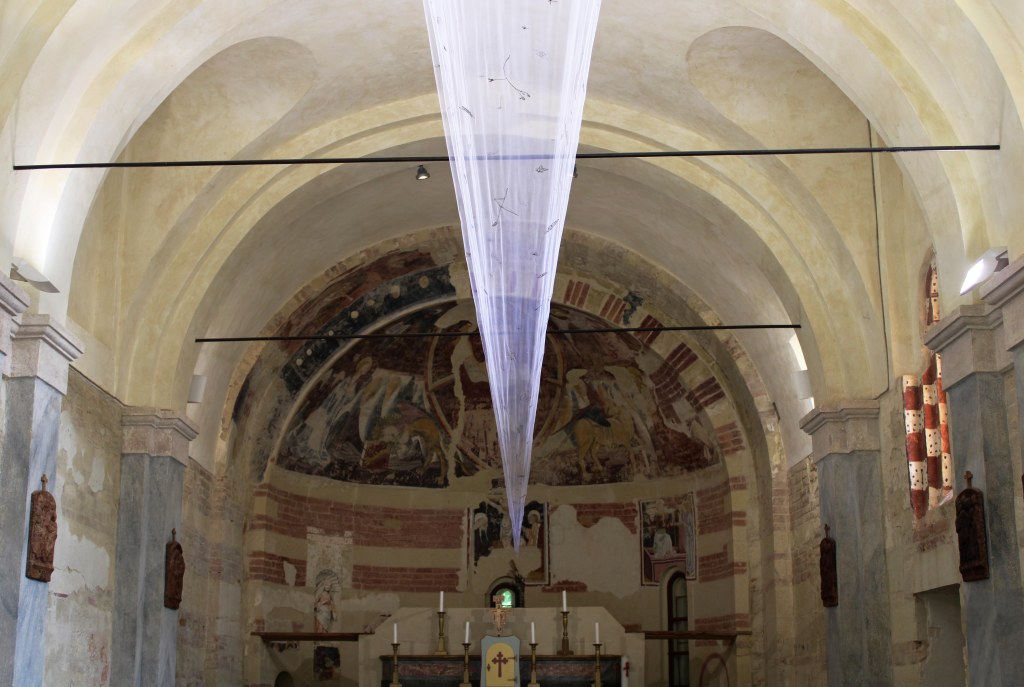 2025, Environmental dimensions, PLA filament, PLA filament on tulle veil, iron, nylon wire, germinale festival, Chiesa della madonna della neve, Castell’alfero (AT)