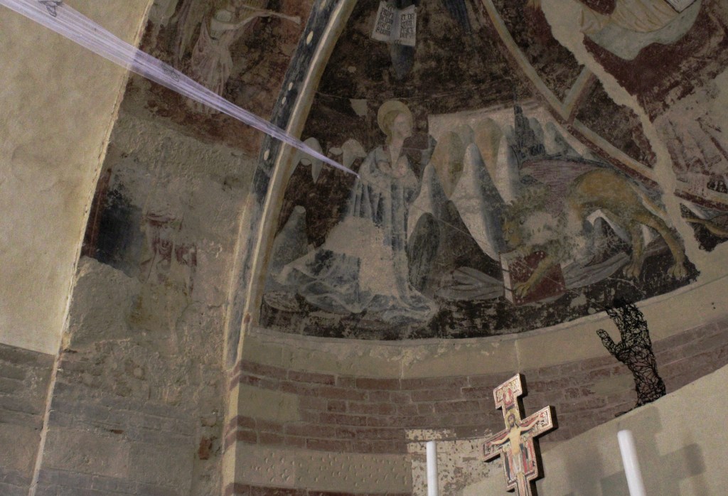 The artwork offers a contemporary reinterpretation of the episode to which the church is dedicated.