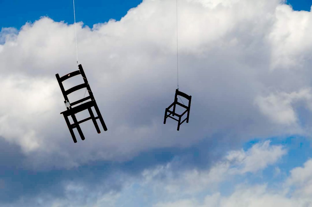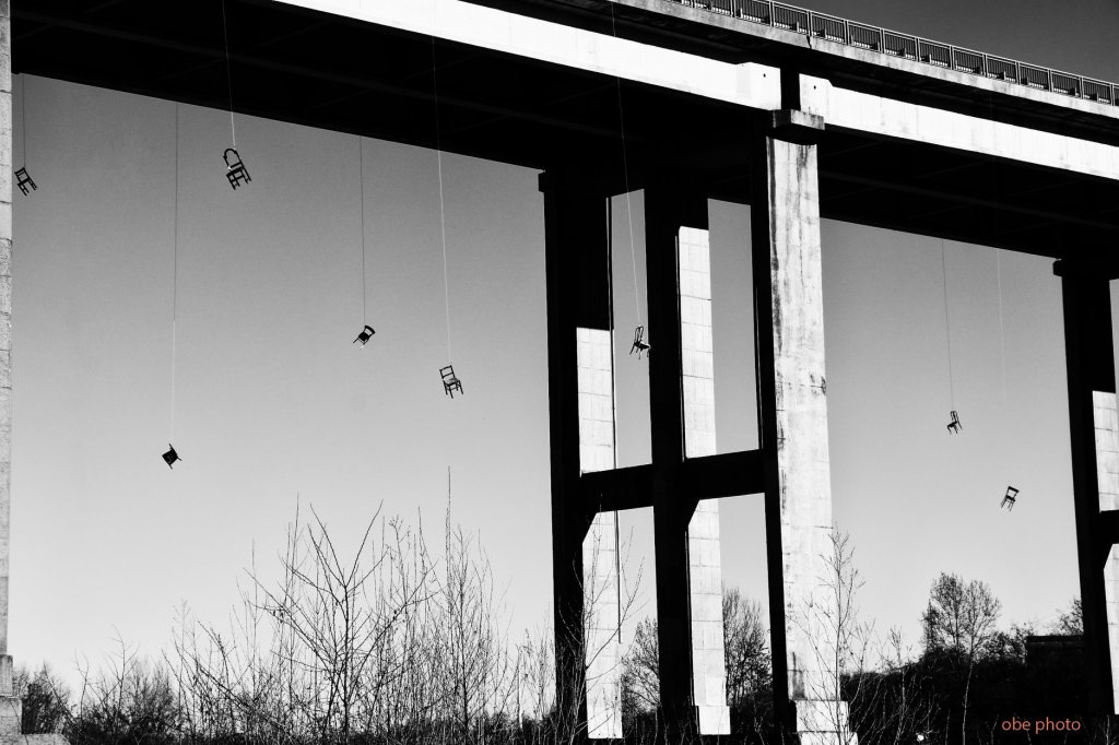 The fifty empty chairs hanging from the deck serve as a metaphor for human beings and their absence in the very moment they become empty. The project was conceived as a reflection on the value of life and the choices we make every day, denouncing the inaction of institutions in the face of widespread distress and the limited media attention given to listening and support centers.