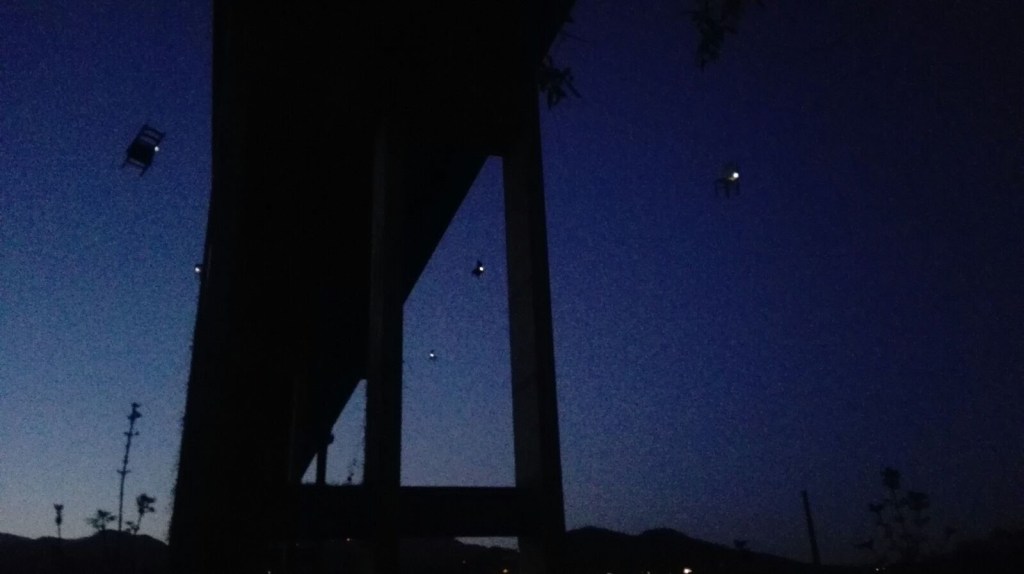 The installation could be experienced both by day and by night. With darkness, the chairs lit up with LEDs, transforming into countless small fireflies or stars, suspended in midair between the earth and the bridge.